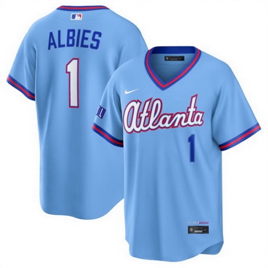 - Mens Majestic Atlanta Braves 1 Ozzie Albies Replica Blue Alternate Road Cool Base MLB Jersey