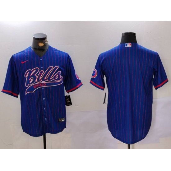 - Men Buffalo Bills big logo Red Blue Team Cool Base Stitched Baseball Jersey 1