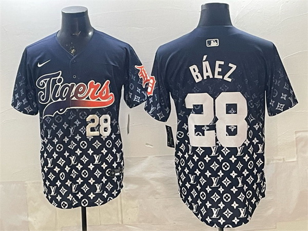 - Men Detroit Tigers Black Team Big Logo Cool Base Stitched Baseball Jersey 3