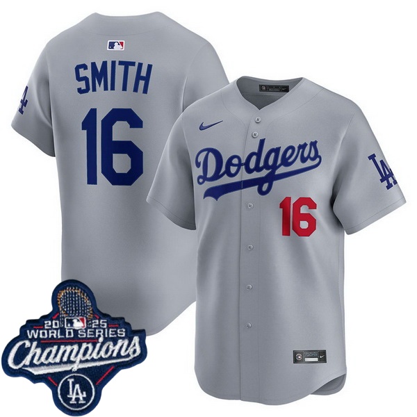Men Los Angeles Dodgers 16 Will Smith Cool Base 2025 World Champions Stitched Baseball Jersey Gray