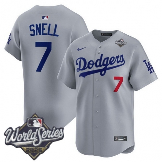 Men Los Angeles Dodgers 7 Blake Snell 2025 World Series Cool Base Stitched Baseball Jersey Gray