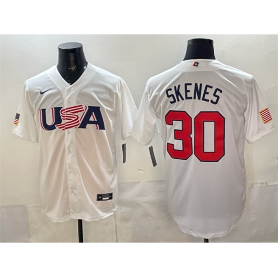 - Men USA Baseball 30 Paul Skenes White World Baseball Classic Stitched Jersey