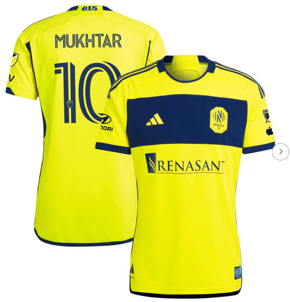 - Mens Nashville SC Hany Mukhtar adidas Yellow 2024 The 615 Kit Authentic Player Jersey