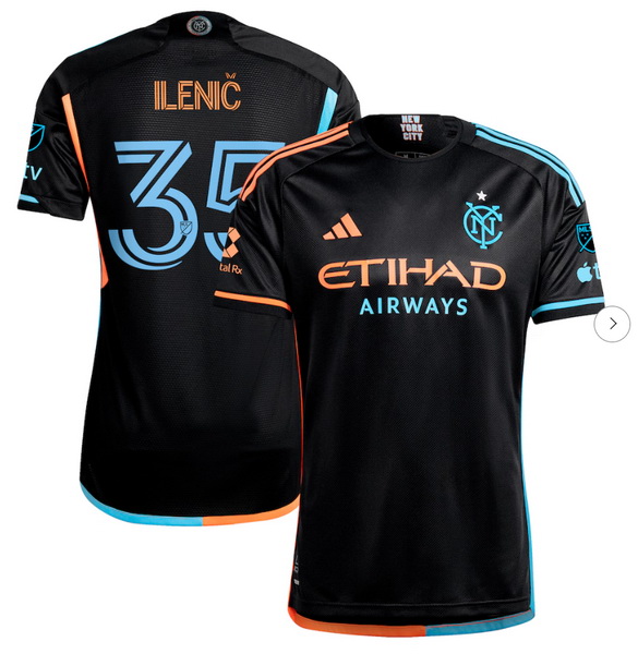 - Men's New York City FC adidas Black 2024 24 7 Kit Replica Custom Jersey