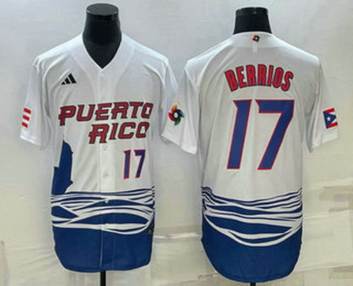 - Men's Puerto Rico Baseball Blank White 2023 World Baseball Classic Stitched Jersey