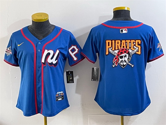 Home>MLB>MLB 2025 All Star>Women Jerseys>Women National League Pittsburgh Pirates Team Big Logo Blue 2025 All Star Edition Limited Stitched Baseball Jersey
