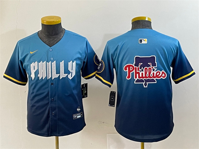 - Youth Philadelphia Phillies 7 Trea Turner Blue 2024 City Connect Limited Stitched Jersey 1